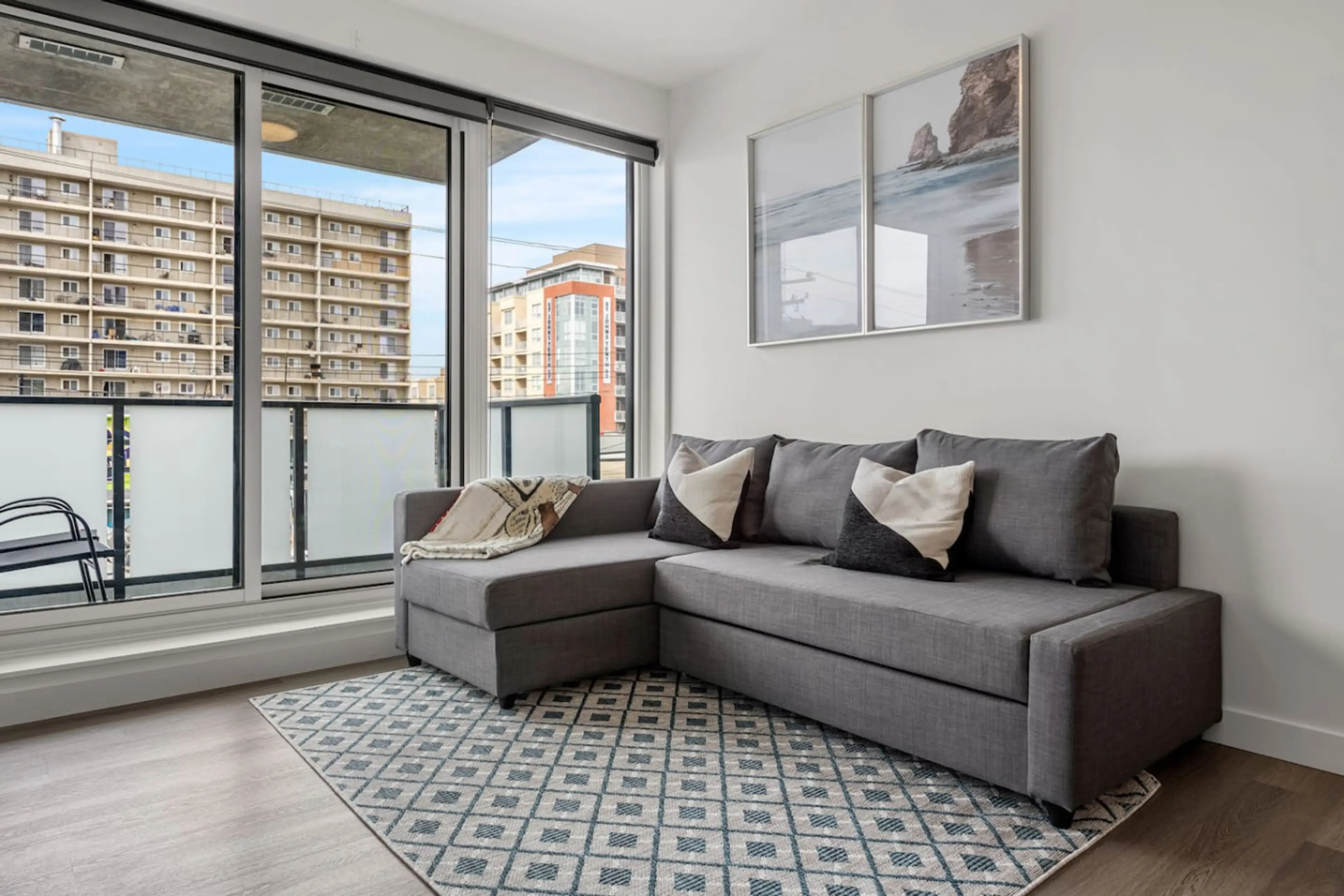 Positive: We liked the location. It had a Safeway supermarket the next block. It had good lighting. it had a separate laundry room. Ref had water dispenser and ice maker. The space was well lit and clean. The building felt safe with all the safety features. Instructions for entering the bldg upon check-in was clear.